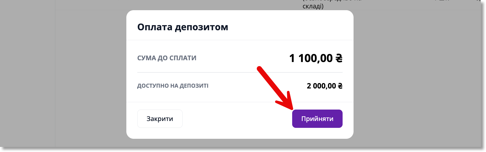 Прийняття оплати депозитом можливе лише у випадку, якщо суми депозиту клієнта вистачає для прийняття всієї оплати